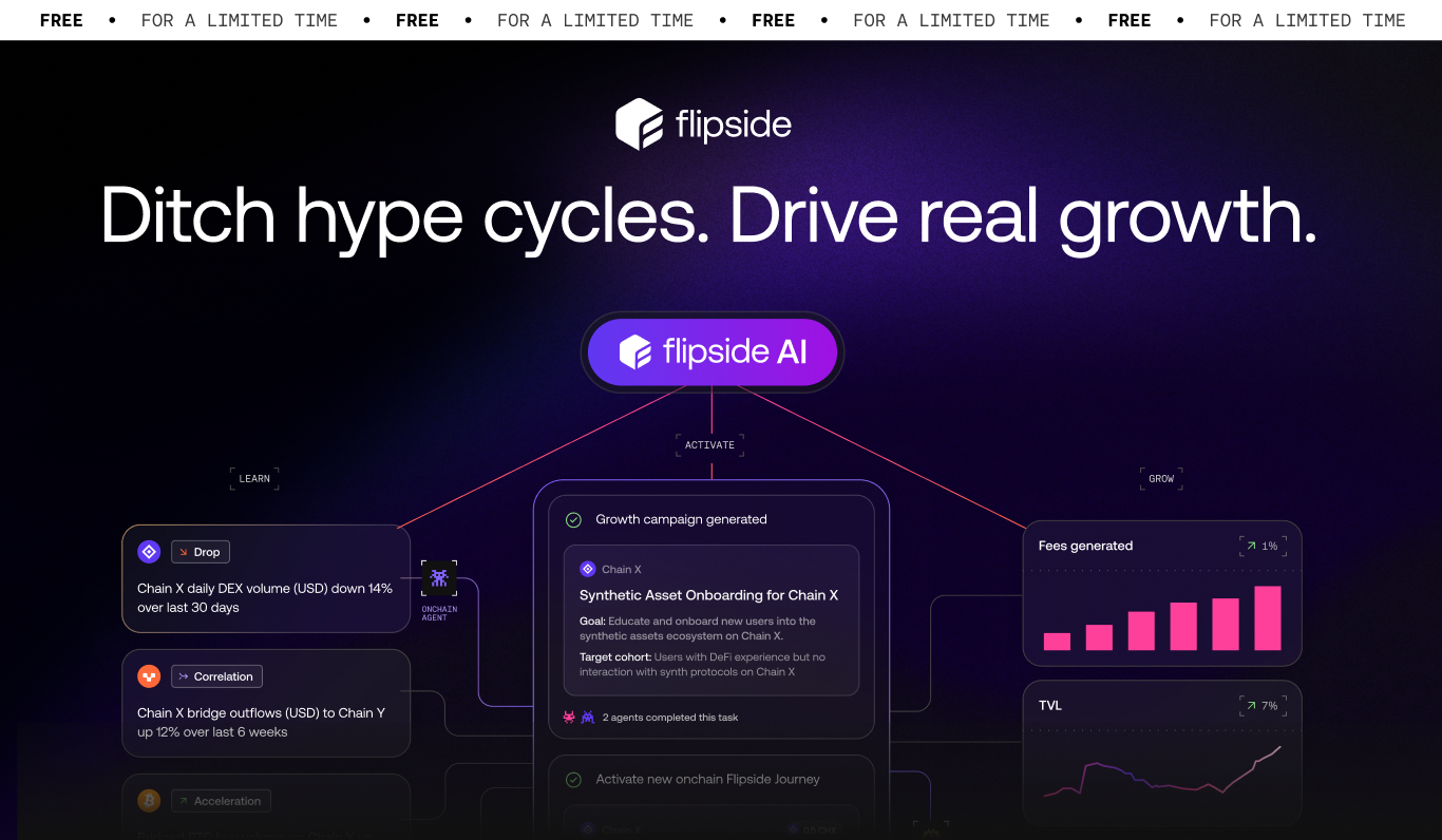 Flipside | The Platform for Intelligent Blockchain Growth Flipside helps blockchains grow intelligently—using AI, data science, and a global community to drive lasting, measurable ecosystem value.